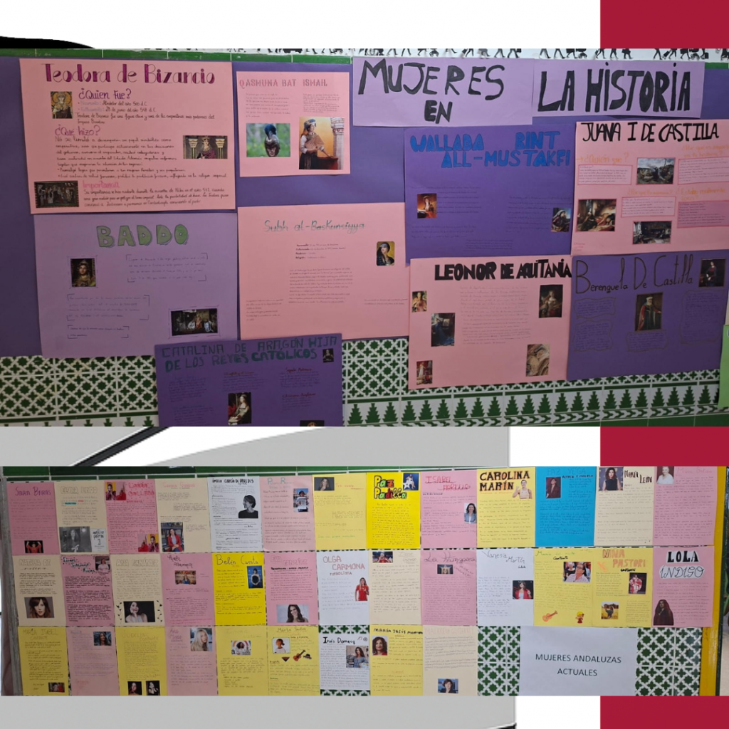 Durante toda esta semana se han llevado a cabo en el centro diferentes actividades con motivo del Día Internacional de la Mujer. A través de ellas se ha querido dar visibilidad al papel de las mujeres en distintos ámbitos, especialmente en el mundo de la ciencia, así como destacar a mujeres andaluzas actuales que son un referente en nuestra sociedad. Asimismo, se ha realizado un recorrido histórico para reflexionar sobre el papel que han desempeñado las mujeres en las distintas épocas y sobre cómo, en muchos momentos de la historia, su contribución ha quedado en un segundo plano.