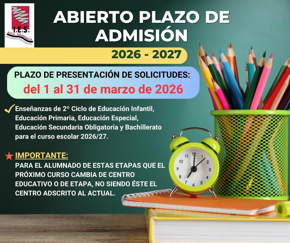 ABIERTO PLAZO DE ADMISIÓN 26/27